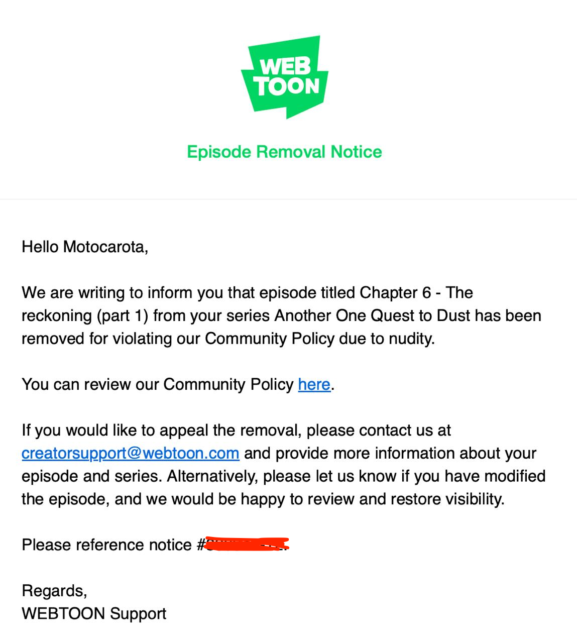 Believe me or not, but this page has been banned from webtoons for nudity.